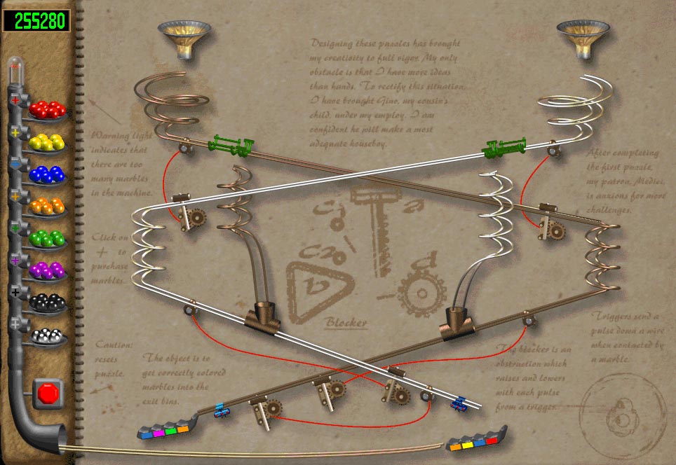 I remember this game very fondly from my childhood. When I was very young I used to love dropping marbles into the various marble machines in this game and watching where they would end up. Only in replaying this game recently can I say that I fully understand how to solve most of the puzzles (though there are still a few that give me trouble).